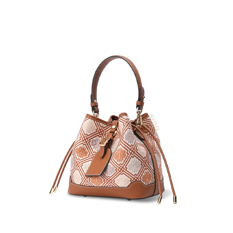 Luxury Zhuang Brocade Chrysanthemum Meander Motif Bucket Bag