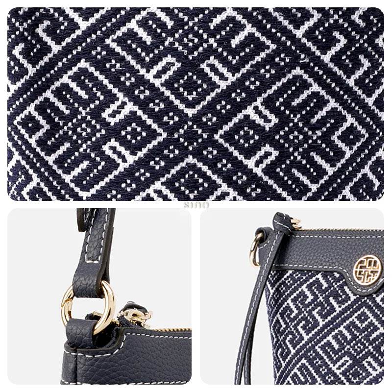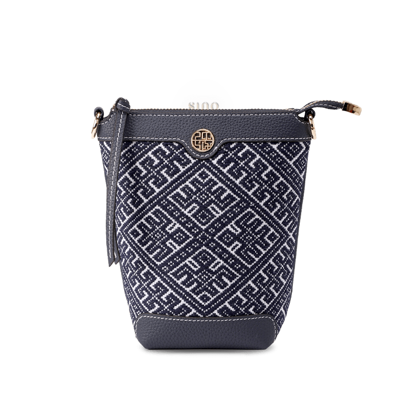 Zhuang Brocade Flying Swallow Motif Embroidered Leather Bucket Crossbody Bag
